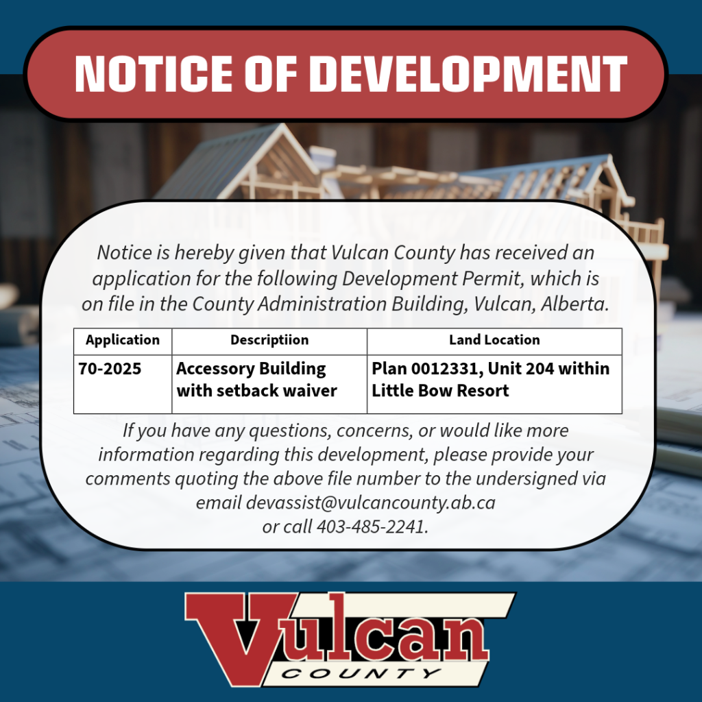 We are currently in the process of re-writing our Municipal Development Plan, for more information on the Municipal Development Plan please click here.