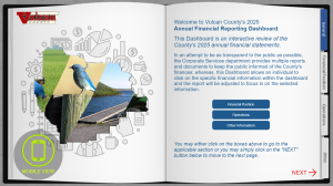 The County has developed an Annual Financial Reporting Dashboards which provided an interactive review of the Financial Statements and the related financial reporting. Click on the following link to access the County’s 2025 Annual Financial Dashboard: